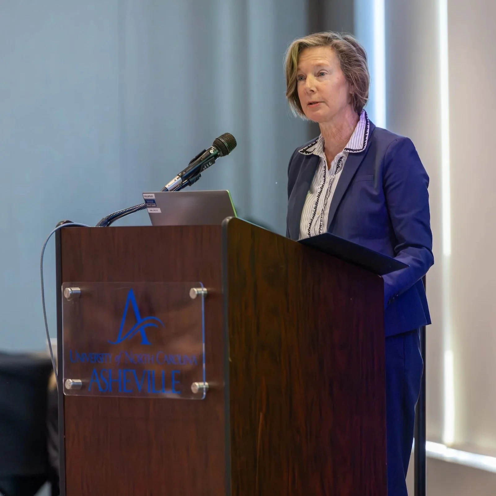Laurie Stradley delivers the keynote address. Photo credit: Emmanuel Figaro, UNCA